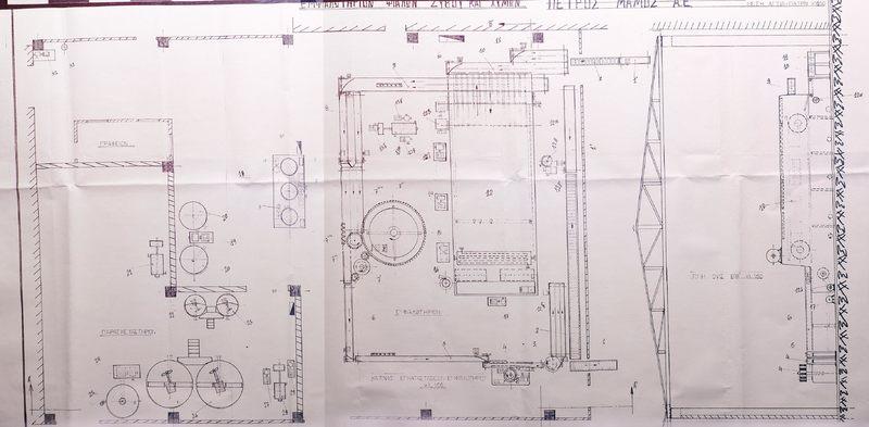Μηχανολογικό σχέδιο του εμφιαλωτηρίου που συνόδευε τον φάκελο αδειοδότησης του εργαστασίου το 1974.