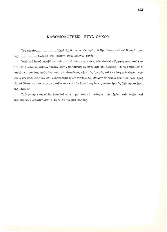 Το κείμενο της καθομολόγησης των πτυχιούχων όπως υπήρχε στην Επετηρίδα του Πανεπιστημίου του 1972.