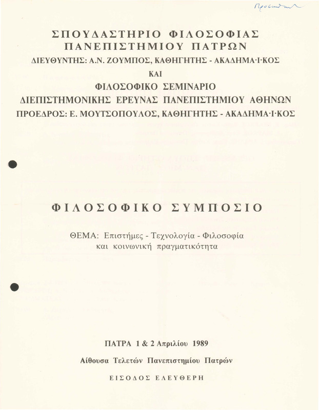 Το πρόγραμμα του Φιλοσοφικού Συμποσίου με θέμα "Επιστήμες - Τεχνολογία - Φιλοσοφία και κοινωνική πραγματικότητα".
